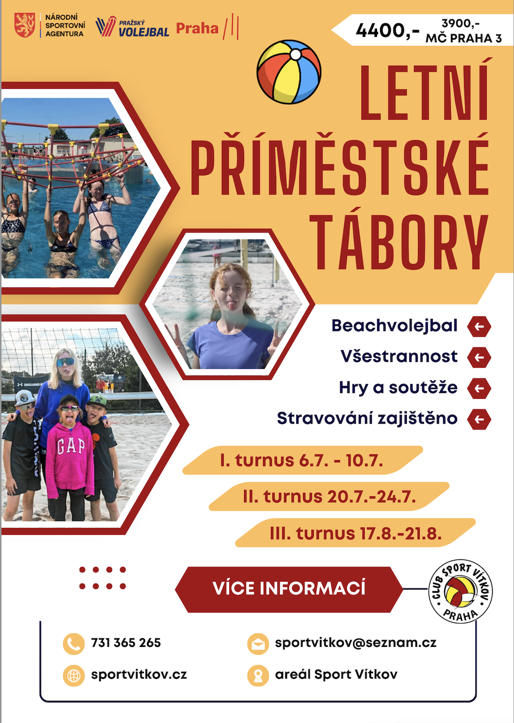 Pravidelně každé letní prázdniny pořádá náš klub letní příměstské tábory pro děti. Tyto tábory jsou zaměřeny především na rozvoj všeobecné zdatnosti, beachvolejbalu a gymnastiky. Celý týden čekají na děti nejen tréninky na písku, ale i dovednostní olympiáda, při které se ukáže i schopnost dětí pracovat v týmu.